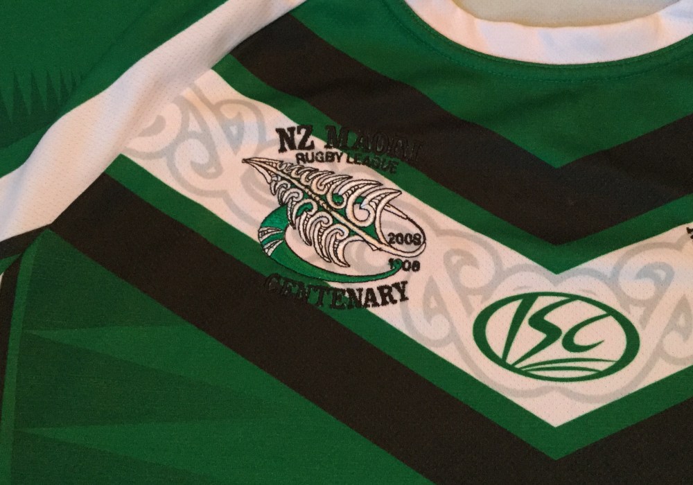 FEATURES – NZ Maori Rugby League Centenary detail on chest commemorating 100 years of the Maoris playing their first RL game
